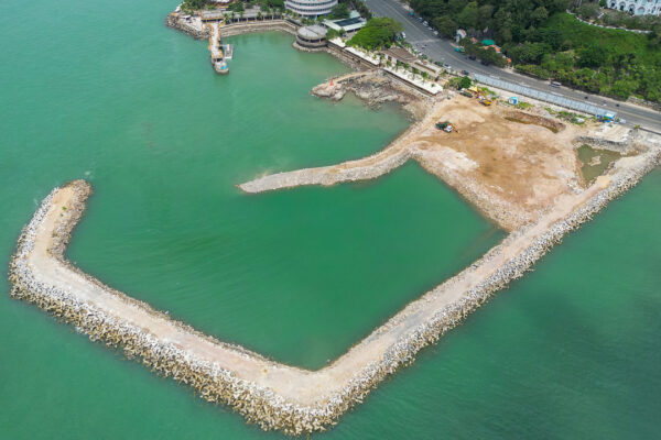 Giữa lòng Bãi Trước Vũng Tàu, một công trình thủy cung đồ sộ dần hiện hình với tuyến đê vây…