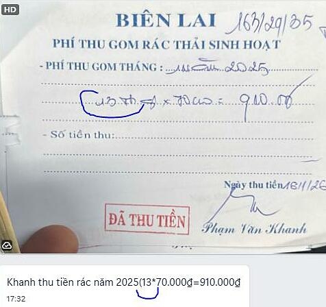 Một cư dân TP HCM đã phải đối mặt với tình huống dở khóc dở cười khi nhận biên lai thu tiền rác cho cả năm, nhưng lại ghi rõ ’13 tháng’ với tổng số tiền 910.000 đồng. Khi thắc mắc về khoản phí bất thường này, cô được giải thích rằng đây là truyền thống lâu đời của khu vực, ai cũng đóng như vậy, mặc dù chưa từng có lời giải thích thỏa đáng. Nhiều hàng xóm cũng xác nhận tình trạng tương tự trong khi các nơi khác chỉ thu đủ 12 tháng.